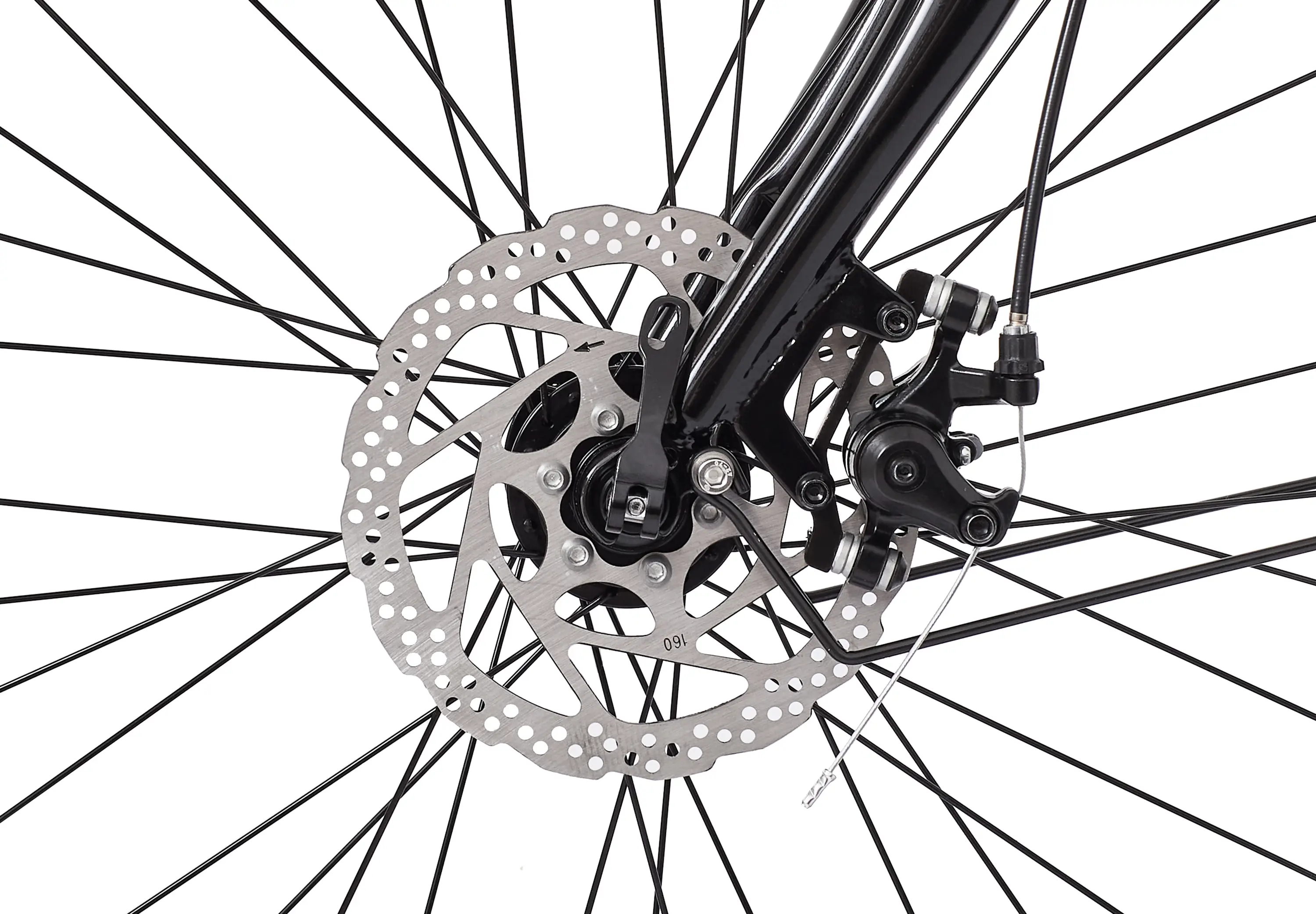 Широкие покрышки на 24-дюймовых колесах повышают проходимость. Колеса крепятся на эксцентрики, поэтому в случае прокола их легко снять для замены камеры. Механические дисковые тормоза более безопасны в дождливую погоду и на скользких покрытиях.