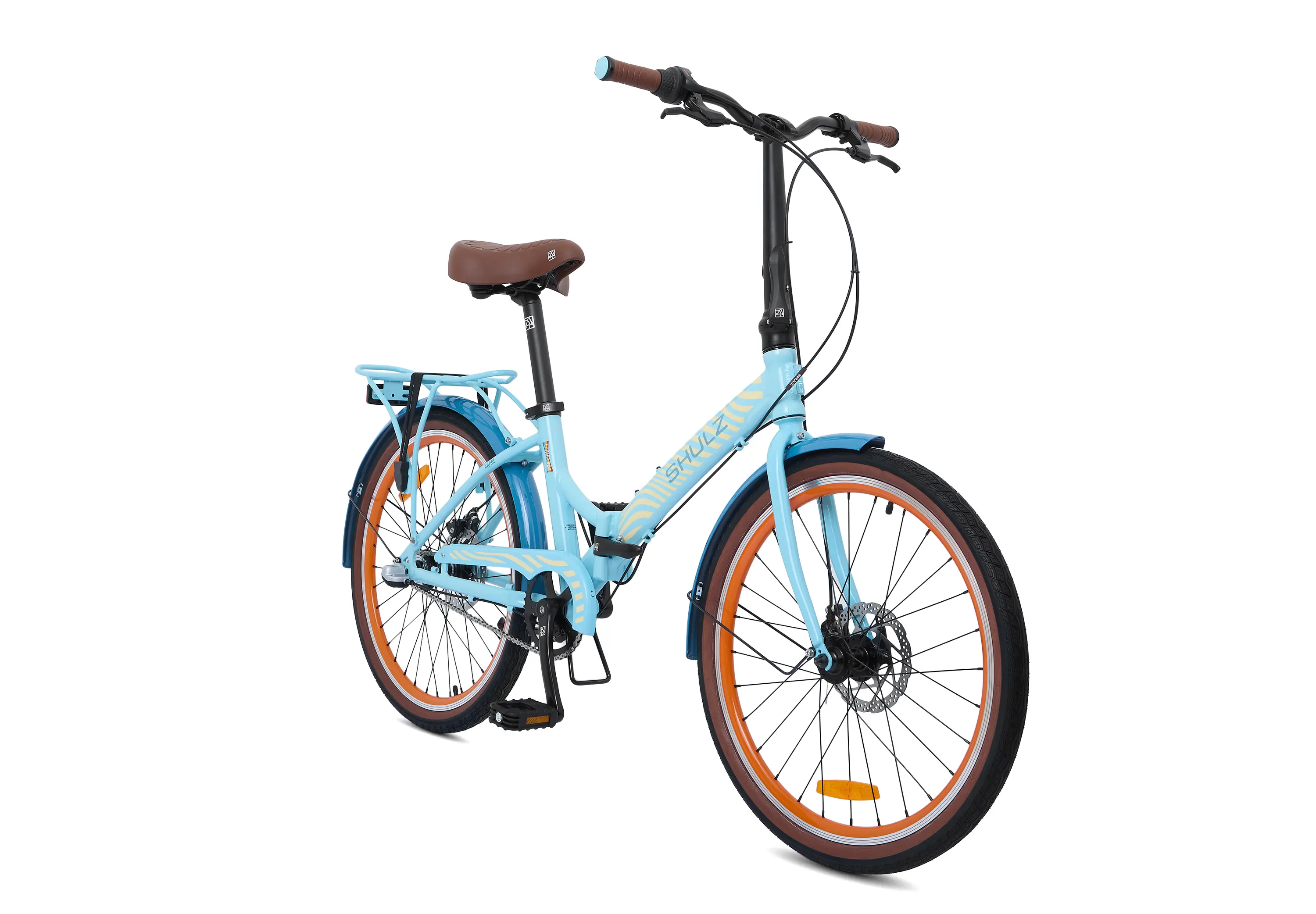 Серия SHULZ Krabi создана для тех, кому комфорт важен не меньше, чем компактность. Это самые большие складные велосипеды SHULZ, предназначенные для городских и загородных прогулок: увеличенные колеса 24 дюйма с толстыми покрышками смягчают неровности дороги. На Krabi удобно благодаря заниженной раме, полупрямой посадке и широкому сиденью на пружинах.
