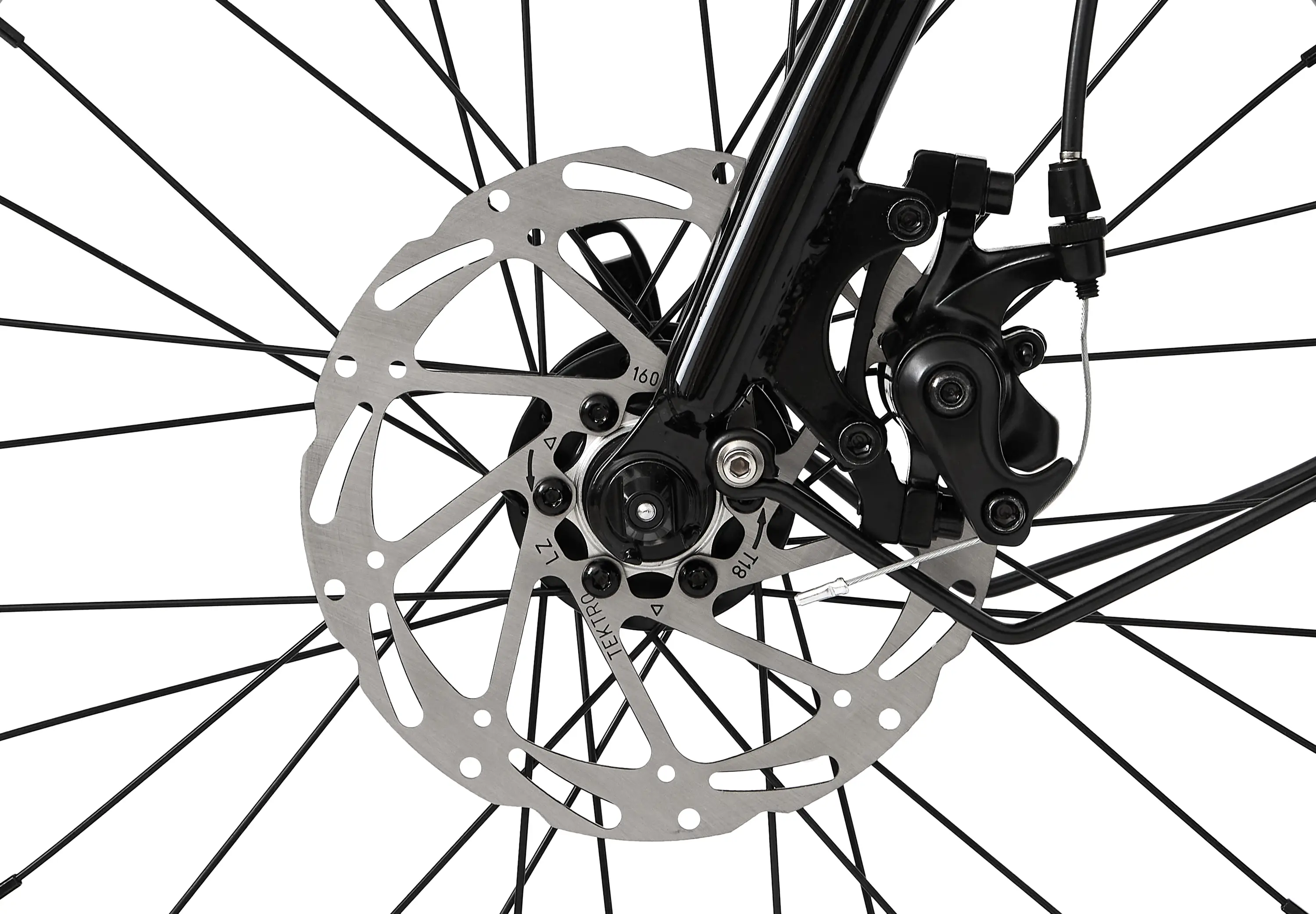 Lentus — велосипед для тяжелых условий, поэтому мы использовали надежные и проверенные компоненты. Велосипед выдержит человека с грузом до 120 кг, а эффективные механические дисковые тормоза помогут остановиться перед препятствием.