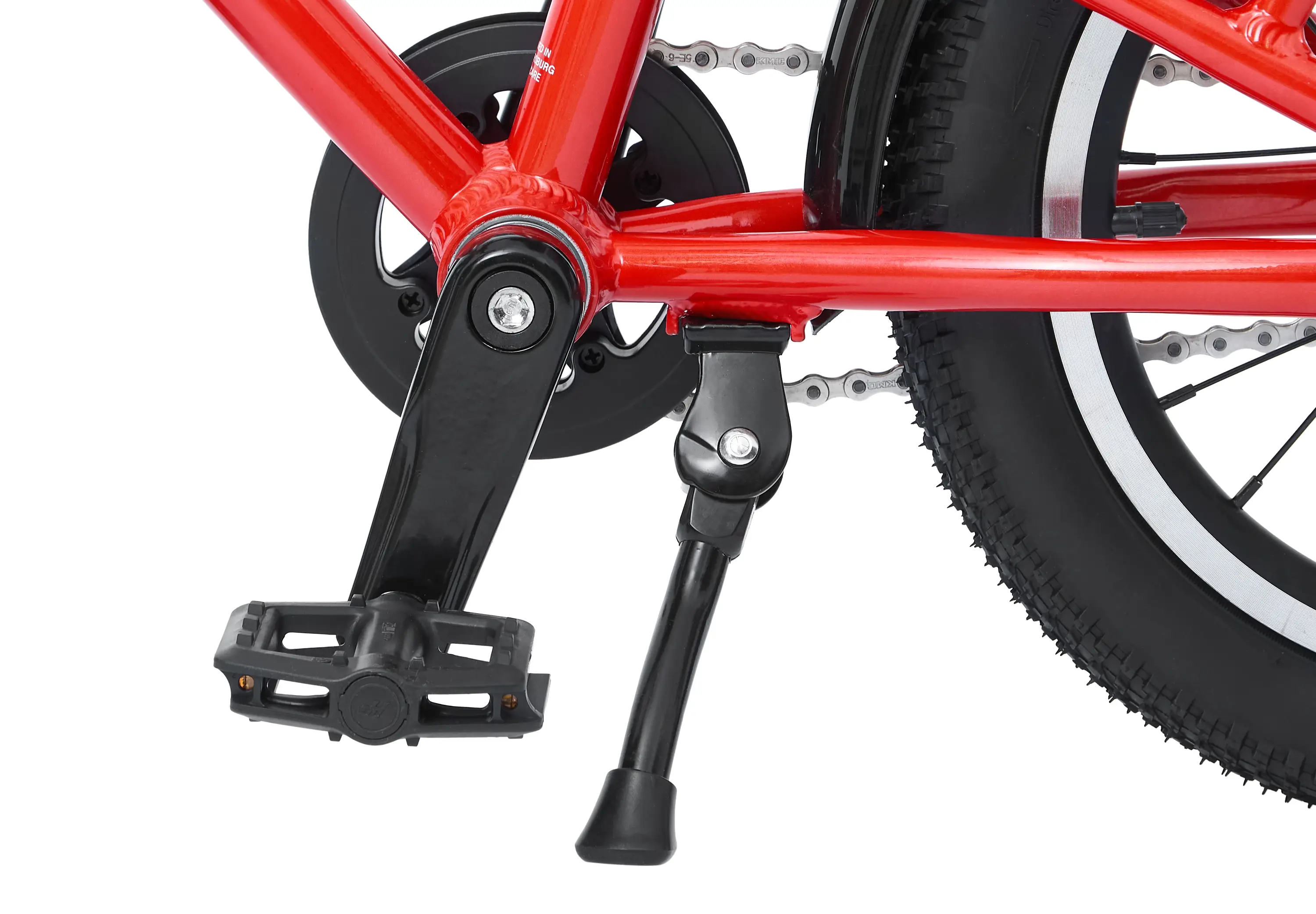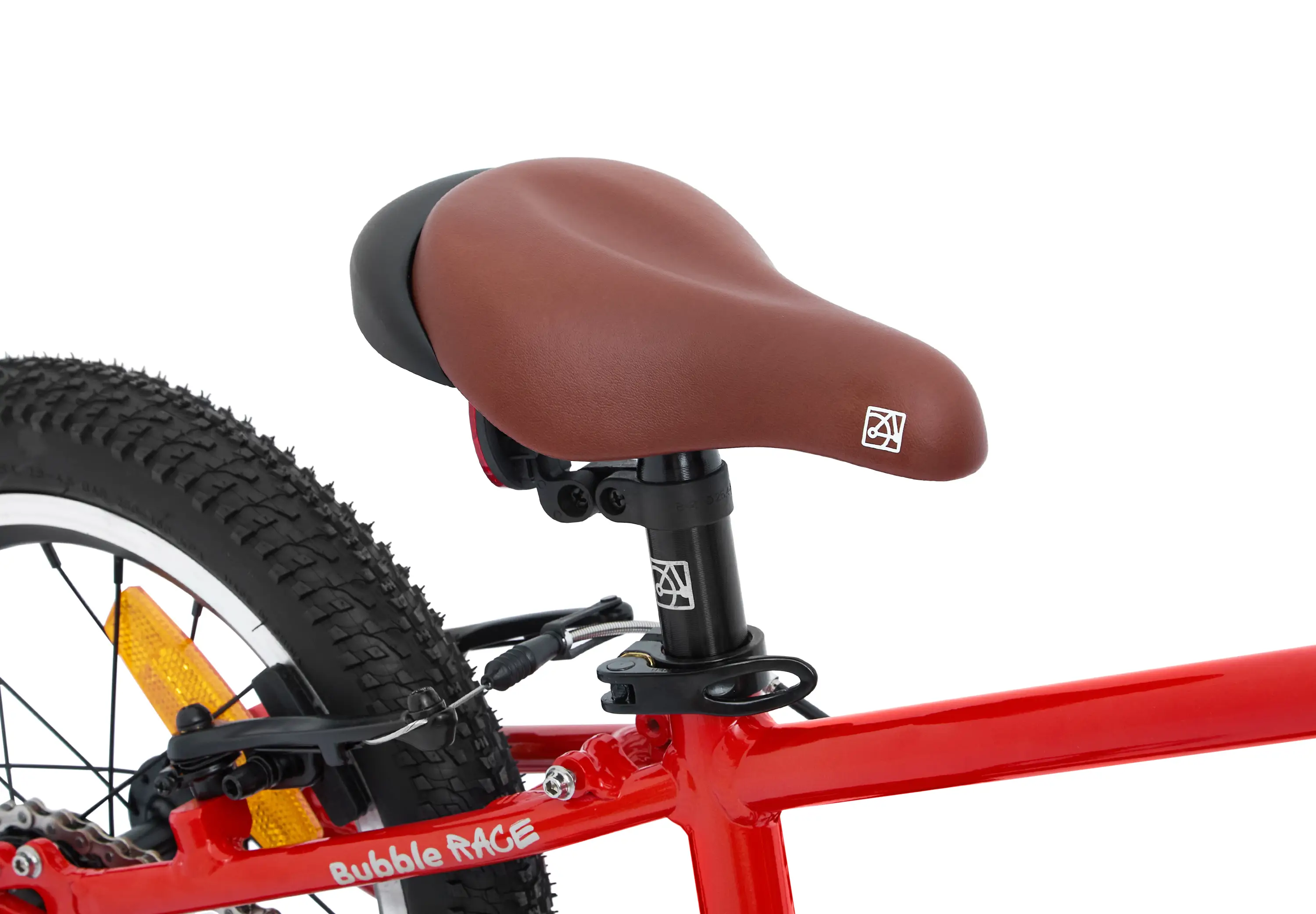 Зубастые покрышки с камерами, которые можно накачать обычным автонасосом, подходят и для асфальта, и для грунтовых парковых тропинок. А чтобы юный велосипедист был заметнее на дороге, мы включили в комплект катафоты и звонок, а на раму нанесли светоотражающие надписи.