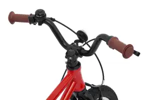 У этой модели легкий в управлении руль и ободные тормоза V-brake с ручками, адаптированными под детские пальцы. Пока малыш только учится кататься, родители могут поддерживать его за специальную ручку сиденья или установить тренировочные колеса.