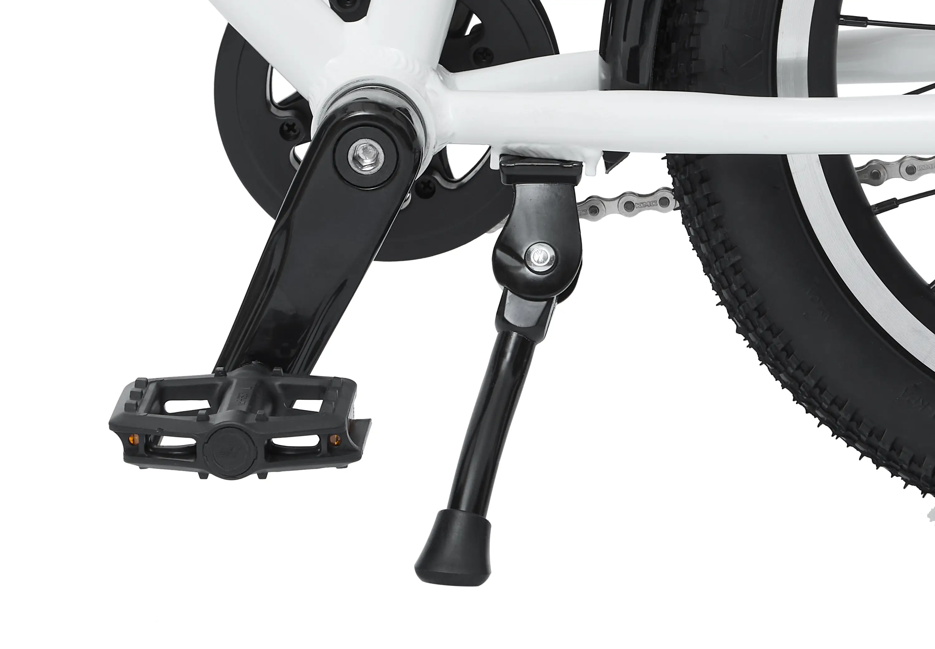 Зубастые покрышки с камерами, которые можно накачать обычным автонасосом, подходят и для асфальта, и для грунтовых парковых тропинок. А чтобы юный велосипедист был заметнее на дороге, мы включили в комплект катафоты и звонок, а на раму нанесли светоотражающие надписи.