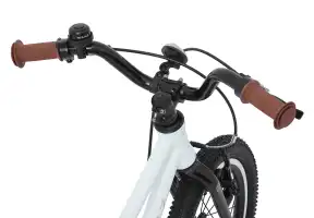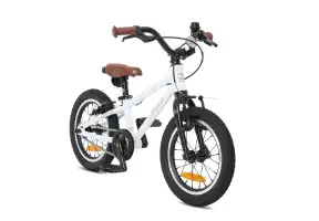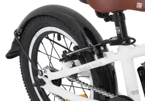 У этой модели легкий в управлении руль и ободные тормоза V-brake с ручками, адаптированными под детские пальцы. Пока малыш только учится кататься, родители могут поддерживать его за специальную ручку сиденья или установить тренировочные колеса.