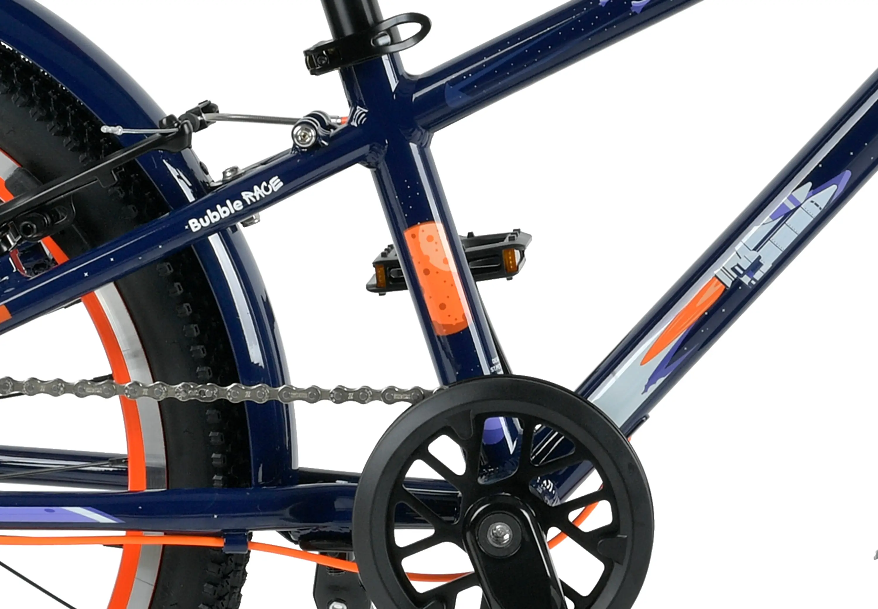 Bubble 20 Race — велосипед для мальчиков и девочек 6−8 лет ростом 115−130 см (высота сиденья регулируется). 20-дюймовые колеса, 7 скоростей и зубастые покрышки — оптимальный набор для активного катания по городу и лесным тропинкам.