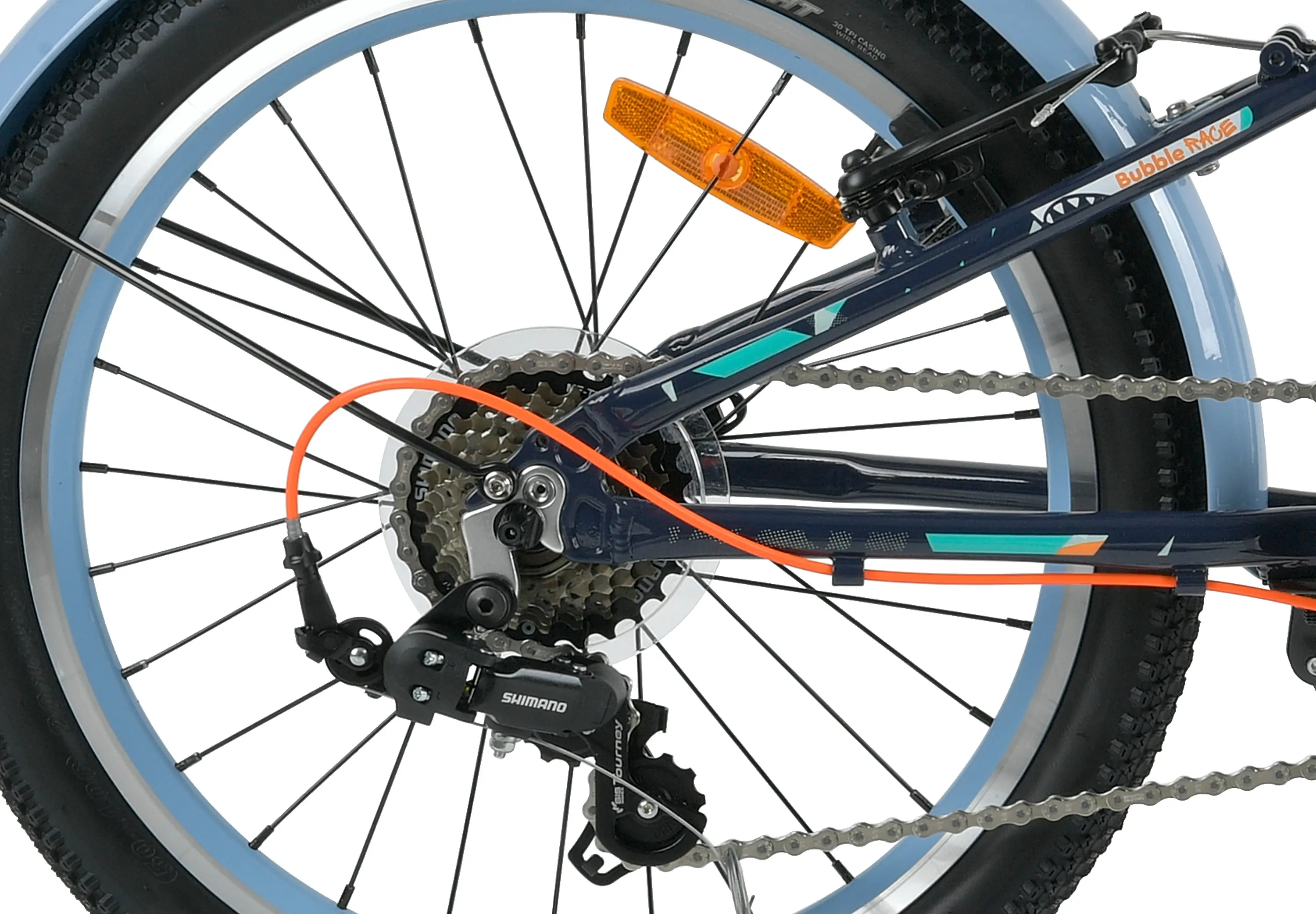 Bubble 20 Race — велосипед для мальчиков и девочек 6−8 лет ростом 115−130 см (высота сиденья регулируется). 20-дюймовые колеса, 7 скоростей и зубастые покрышки — оптимальный набор для активного катания по городу и лесным тропинкам.
