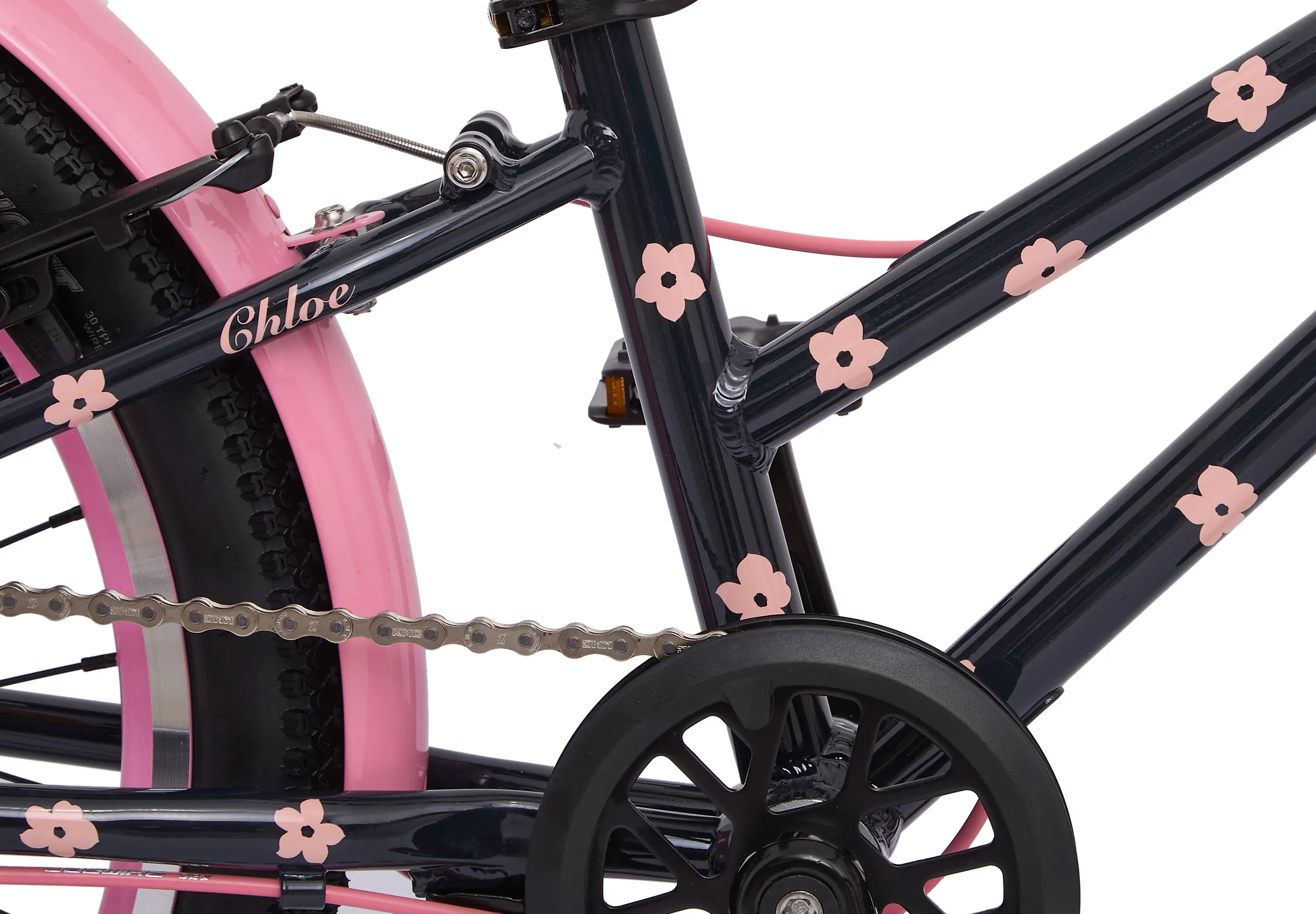 Chloe — линейка велосипедов с заниженной алюминиевой рамой для детей и подростков. Такую конструкцию мы разработали для девочек, но опыт показал, что Chloe нравятся и мальчикам благодаря удобной посадке с небольшим наклоном вперед. Chloe — одни из самых легких детских велосипедов на рынке.