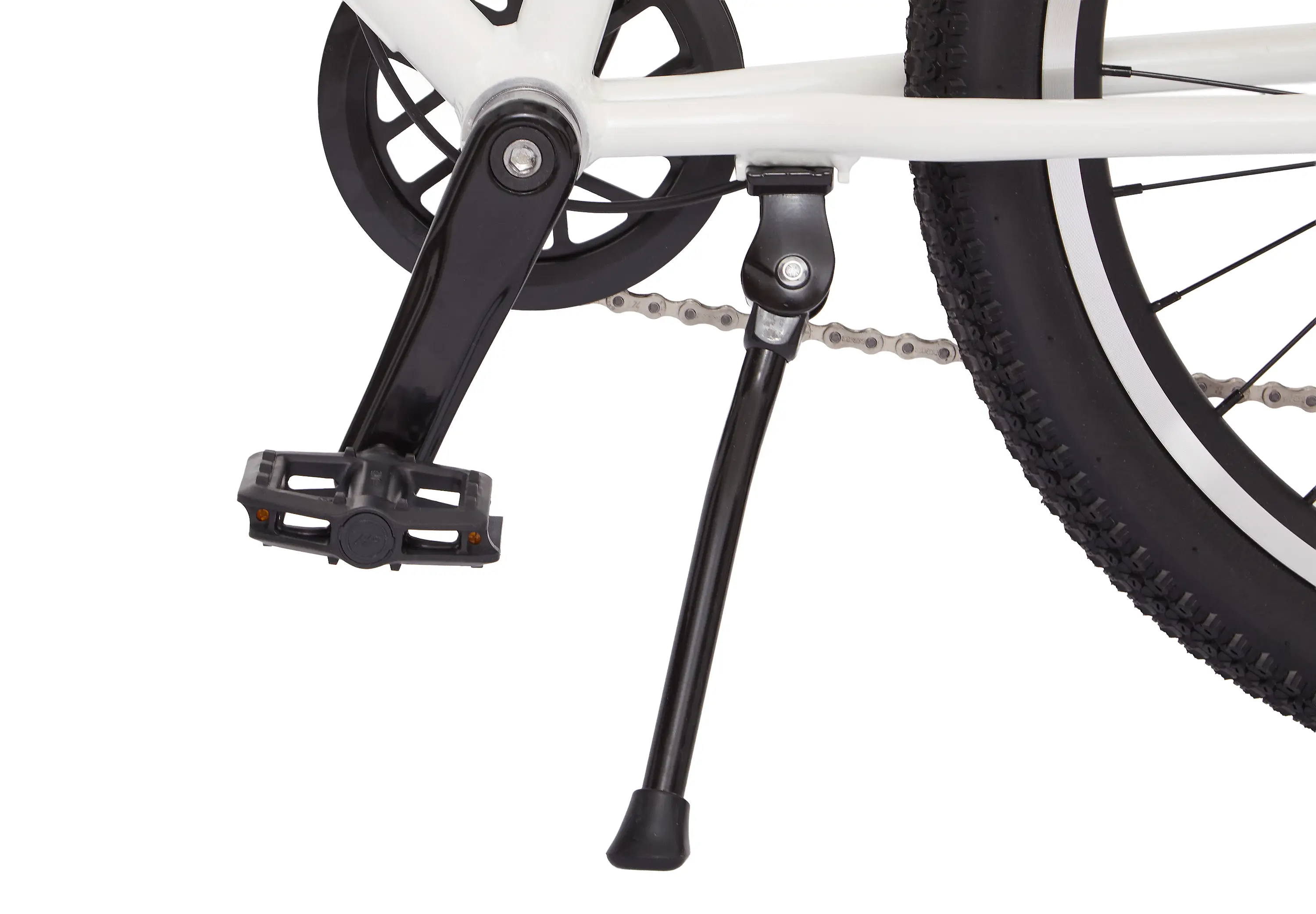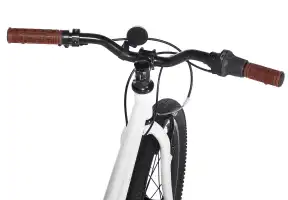 Штатные покрышки с мелкими частыми зацепами подходят и для городских парков, и для лесных тропинок. В комплект входят катафоты и звонок.