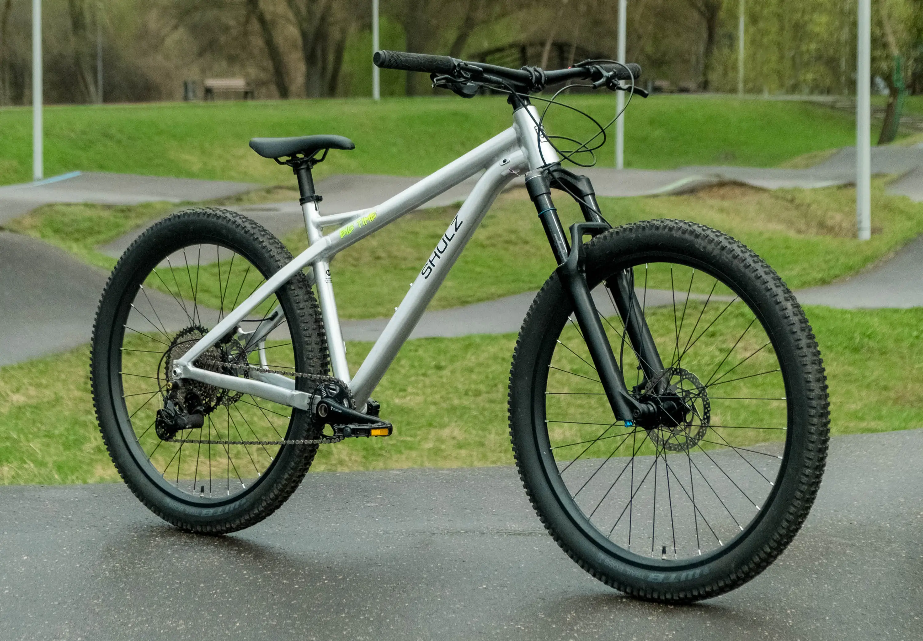 Горный трейловый велосипед с алюминиевой рамой, колесами 27.5″, воздушной амортизационной вилкой и гидравлическими тормозами для трейлов начального уровня в исполнении уверенных в себе велосипедистов и велосипедисток — вверх-вниз по лесным и горным тропам, невзирая на корни и камни! SHULZ Big Time — это золотая середина между велосипедами для тех, кто только начинает кататься, и байков для профессиональных спортсменов.