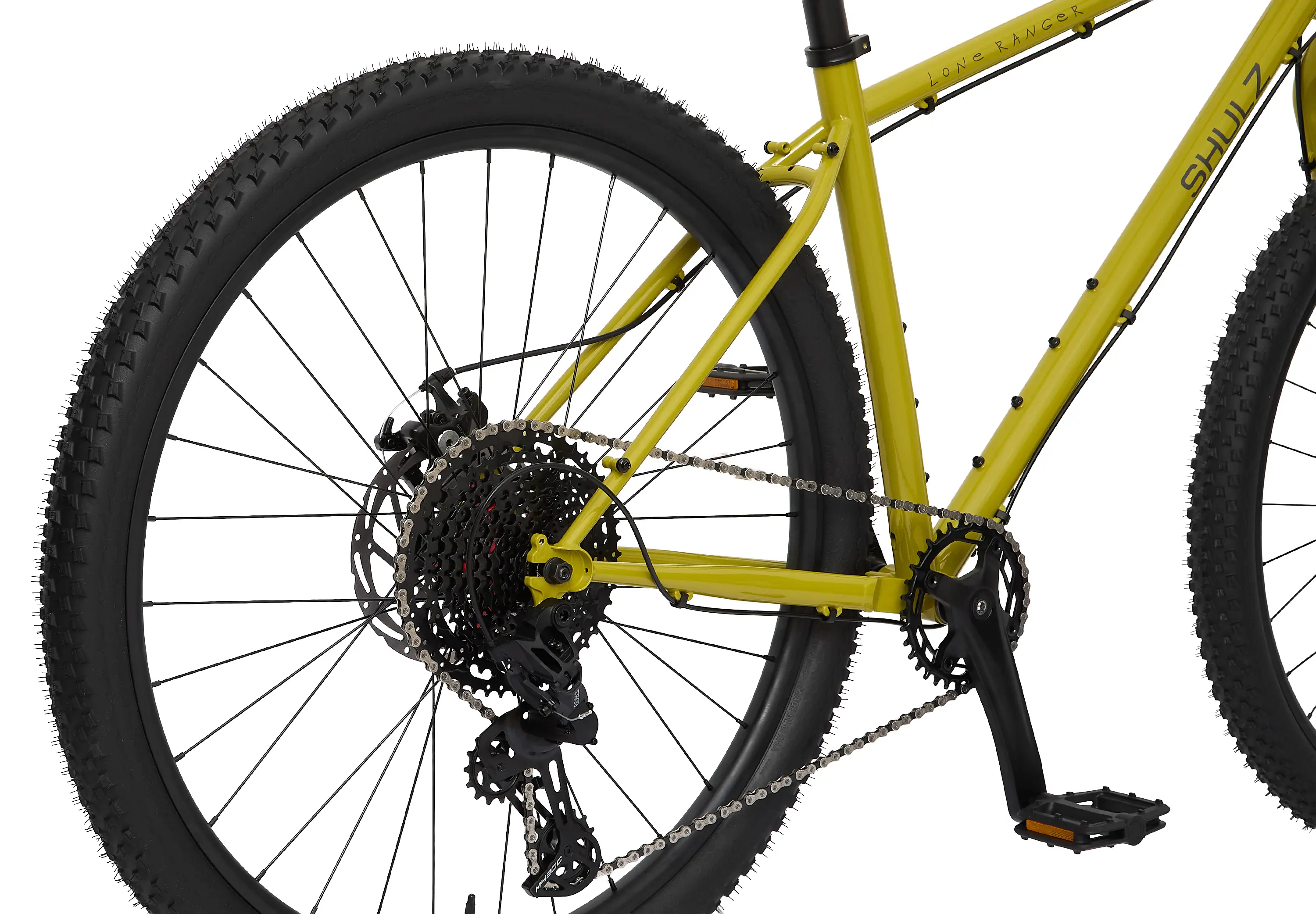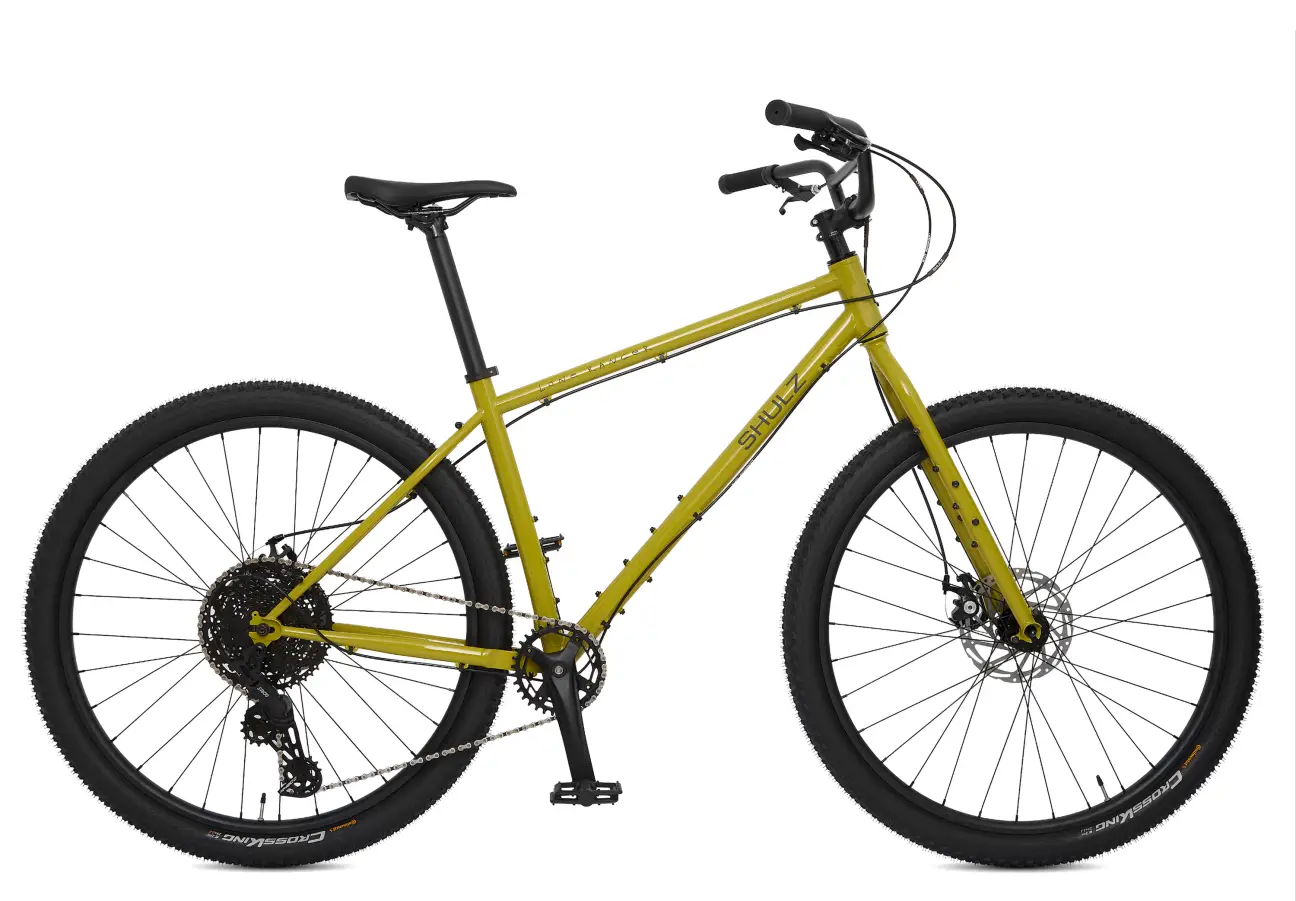 Shulz Lone Ranger — это так называемый rigid niner, горный внедорожный велосипед на 29 колесах с жесткой вилкой. Вы можете ехать на нем по бездорожью, но вероятнее всего его будет неудобно использовать на каких-то техничных участках со спусками, потому что у него нет амортизационной вилки. Вы не сможете развить какую-то большую скорость при тряске и не сможете полностью контролировать велосипед на валунах и булыжниках, однако по внедорожью с рельефом на небольшой скорости вы сможете добраться до любой точки назначения. Задумка этого велосипеда в этом.