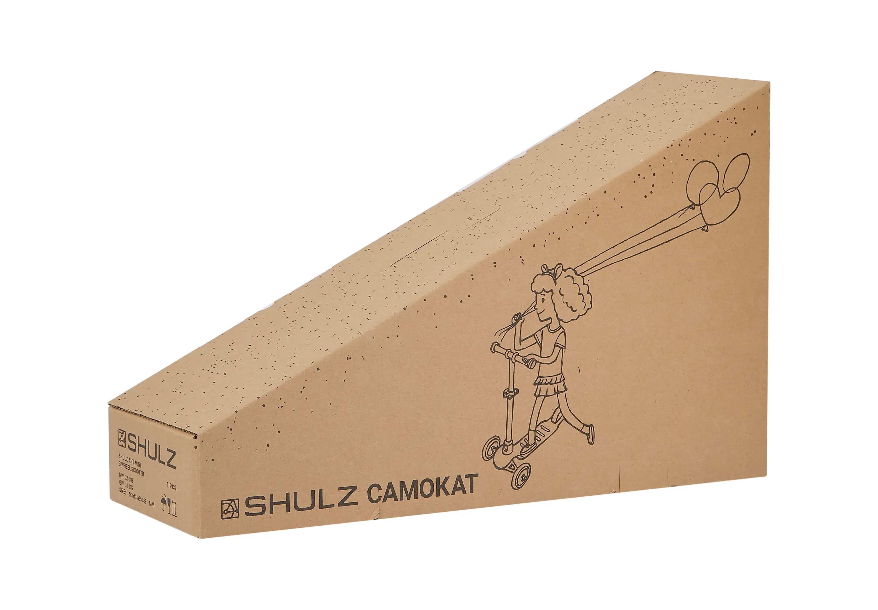 SHULZ ANT MINI — лёгкий и компактный трёхколесный самокат на рост от 85 до 110 см. Главные преимущества — скорость, маневренность и накат. Эти параметры обеспечиваются более узкими колёсами, чем на SHULZ ANT, меньшими габаритами доски и монолитной системой передней подвески, которая крепится через дополнительный подшипник.