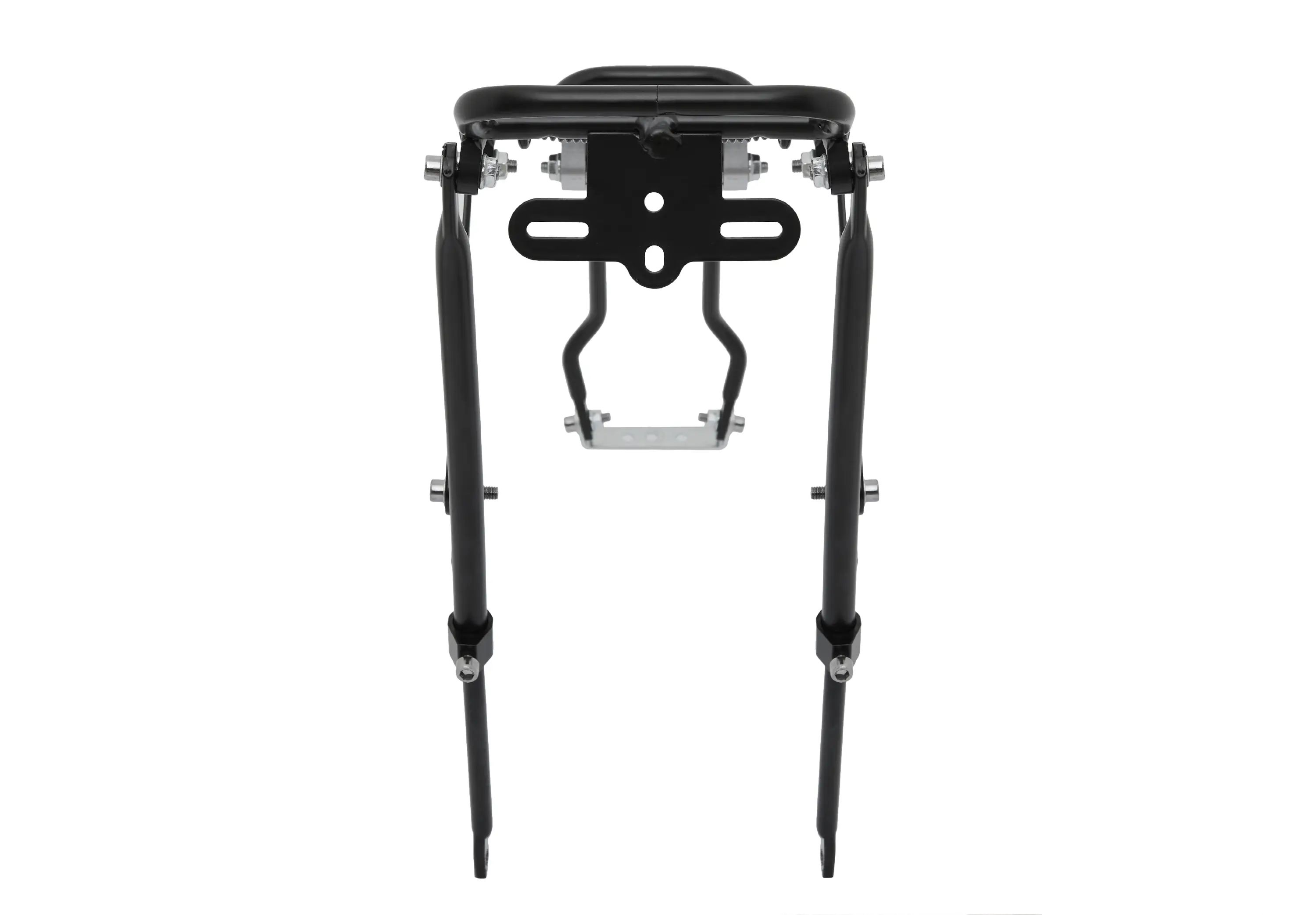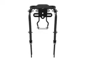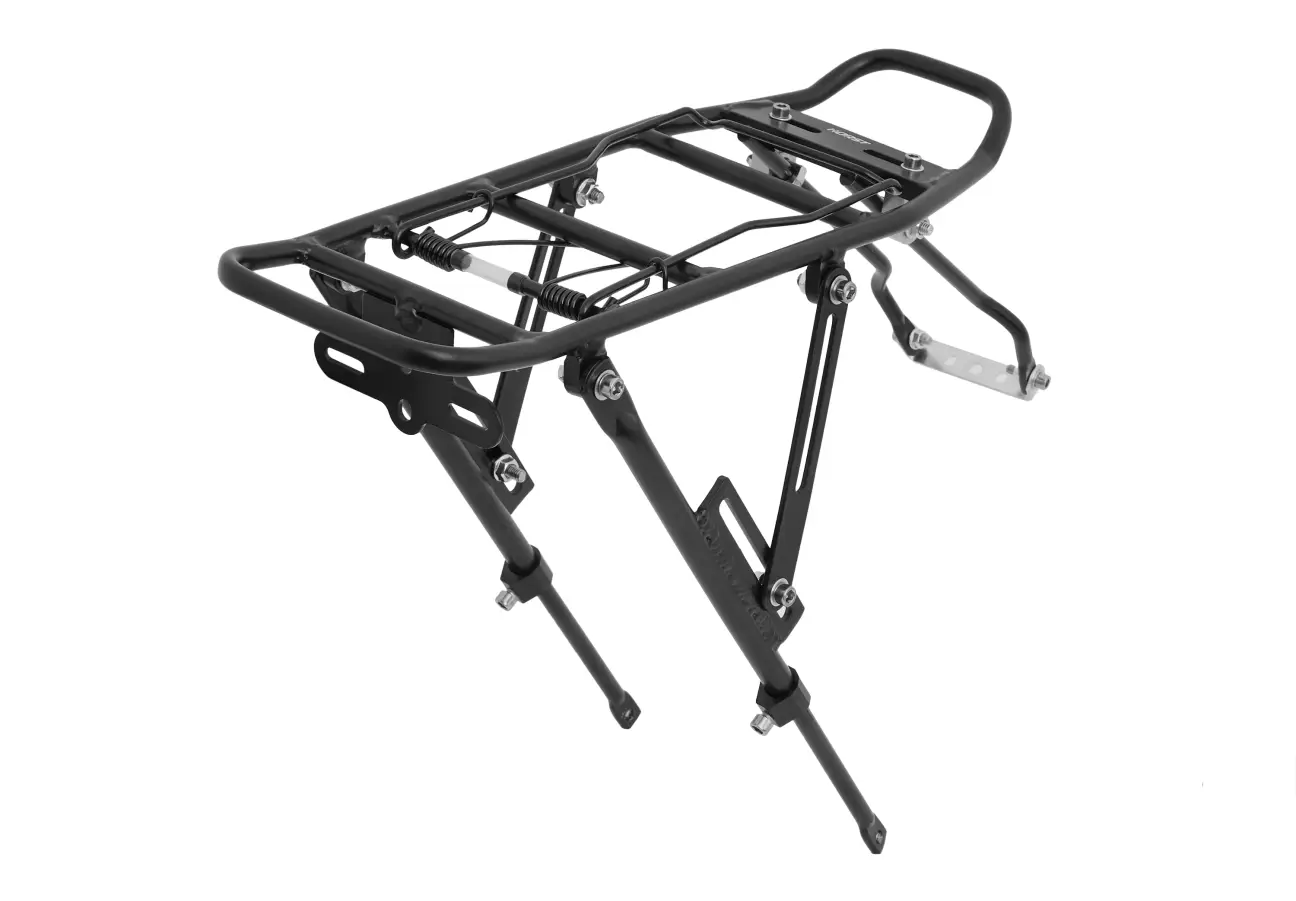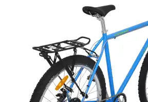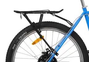 Багажник универсальный с классическим верхним креплением к раме велосипеда и настраиваемыми фиксаторами на верхних перьях рамы, закрепляемыми болтами.