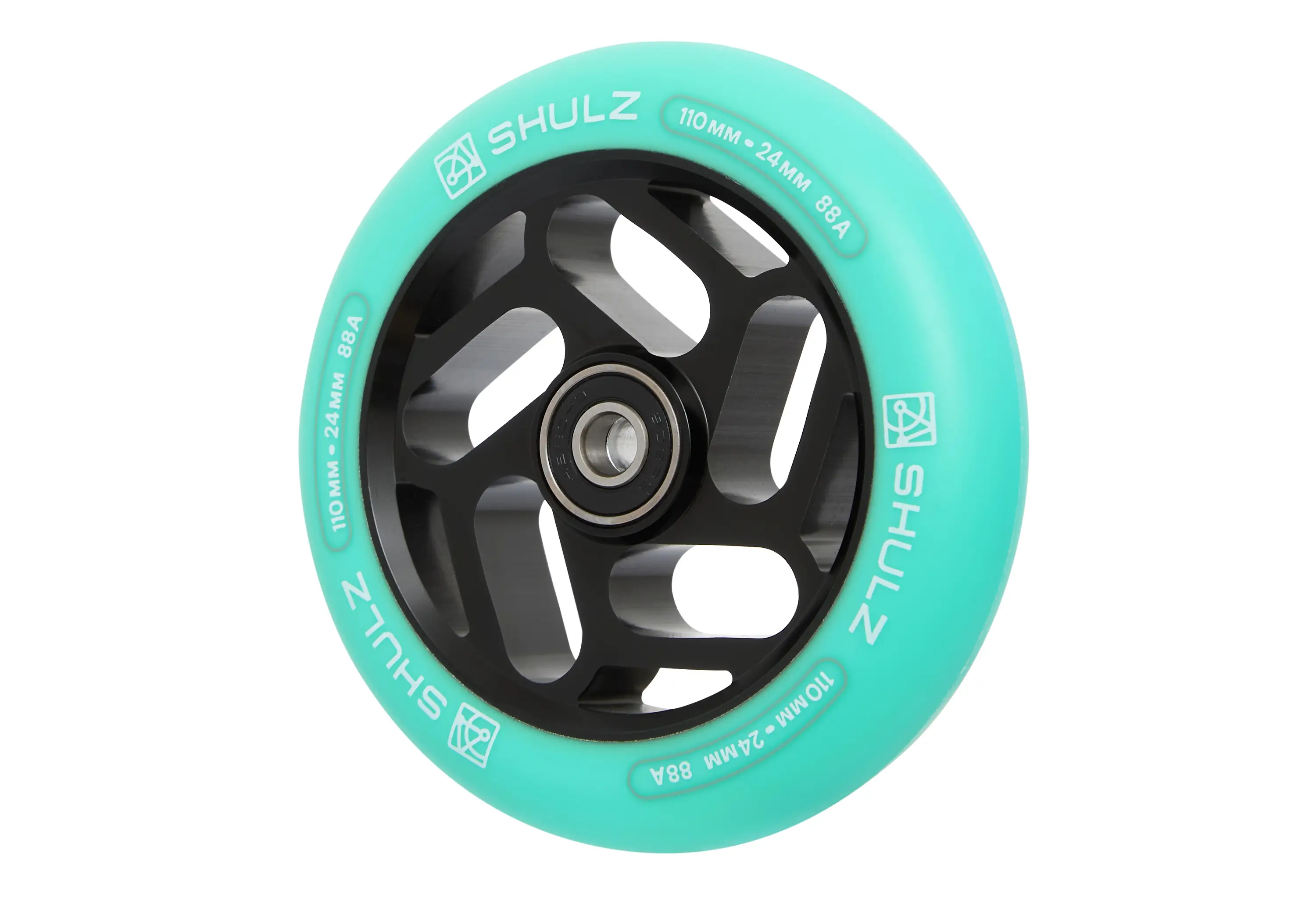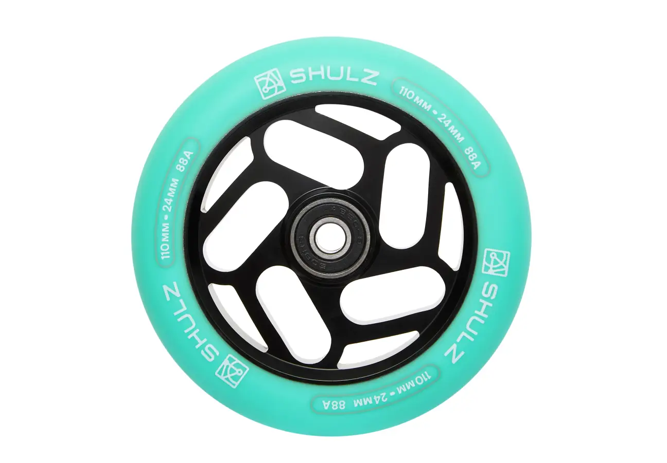 Колесо от самоката SHULZ OWL и OWL XS выполнено в фирменном стиле с фрезерованными овалами. Может быть установлено в любой трюковой самокат, которому подходят колёса 110 мм.